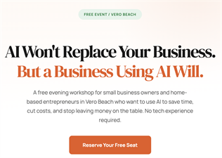 The practical pitch here is that every small business in Indian River County is fighting for the same pool of local buyers. The business that responds first, shows up in more searches, and posts consistently is the one that wins the job. This workshop gives owners the specific tools and workflows to do all three without hiring anyone or learning to code. Jon promises plain English, no sales pitch, and an action plan attendees can use the next morning to start pulling in customers their competitors are missing.