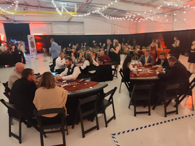 Guests will enjoy a sophisticated Casino Royale-themed experience featuring classic casino games, live jazz entertainment, valet service, and catering by American Icon Catering. VIP and High Roller packages offer exclusive gaming access, premium hospitality, and private table options ideal for corporate hosting.